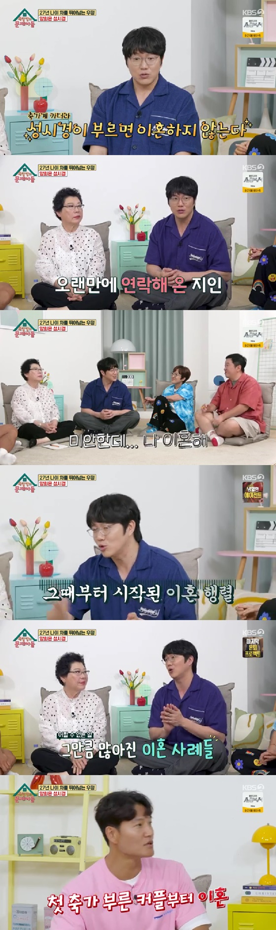이에 김종국 역시 "이혼을 나쁘게 생각하면 안 된다. 저는 첫 축가를 부른 커플이 이혼했다더라"고 갑작스럽게 고백해 웃음을 자아냈다.