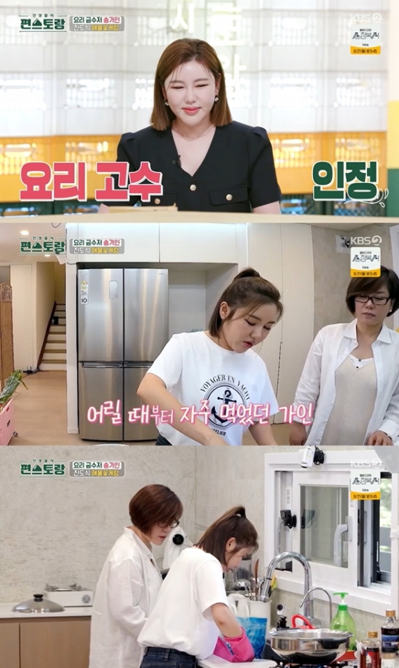 송가인은 지난 11일 오후 9시 10분 방송된 KBS2 '신상출시 편스토랑'에 출연, 부모님의 손맛을 그대로 물려받은 요리 실력을 선보였다.