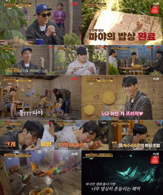 지난 11일 방송된 tvN '형따라 마야로 : 아홉개의 열쇠'(연출 방글이)에서는 먼저 언어를 비롯해 마야 전통을 지키며 살아가는 '쏘칠족'의 한 가족에게 초대를 받은 '마야즈 3인방'이 마야 밥상을 체험하는 과정이 그려졌다. 이 가족의 안주인 엘레나는 전통 방식을 고수하는 알아주는 '요리 고수'. 그녀의 부엌에서 가장 눈에 띈 것은 바로 포대에 가득 담긴 옥수수였다. 마을에 도착하기 전 '차박사' 차승원이 설명한대로, 인간을 옥수수로 만들었다고 믿었던 마야인들에게 옥수수는 시조이자, 신앙이자, 번영의 상징으로, 한국인에게 쌀과 같은 주요 식재료였다.