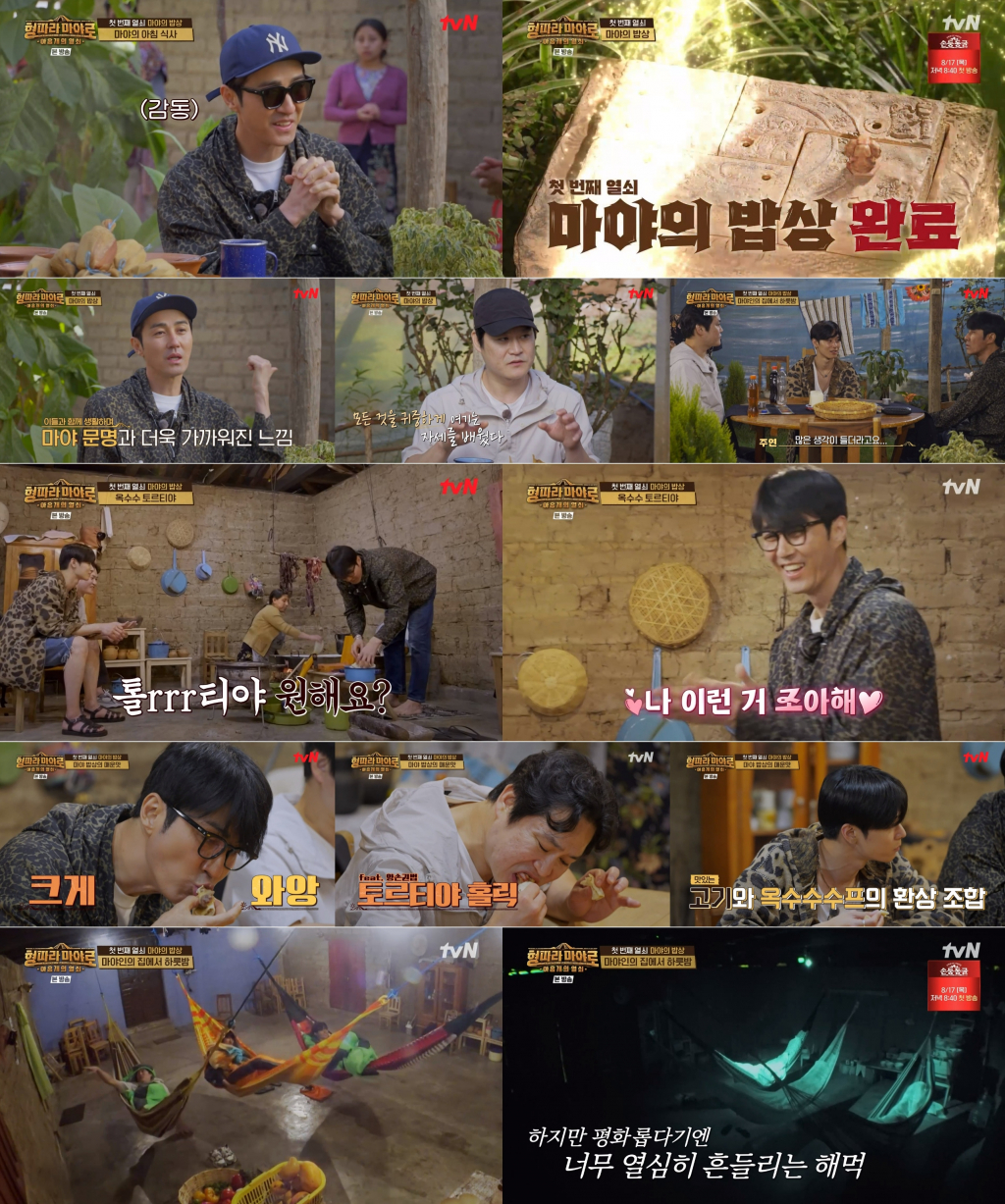 "낯선 이방인을 먹여주고 재워주는 등 온기를 느꼈다. 마야인들의 생활상에 더 가깝게 다가갈 수 있었던 시간이었다"는 차승원, "쉽게 소비되고 버려지는 시대에, 흔한 옥수수를 최선을 다해 요리하고 남은 음식들은 나누며 모든 것을 귀중하게 여기는 자세를 배웠다"는 김성균, "나와 나이대가 비슷한 딸이 부모님을 돕는 철든 모습을 보며, 나 잘 되는 것만 향했던 나 자신을 돌아보게 됐다"는 주연. '마야즈 3인방'은 마야 가족의 훈훈한 정으로 의미 있는 미션을 마치며 첫 번째 열쇠를 획득했다. 하지만 대접만 받을 차승원이 아니었다. "제대로 된 보답을 하고 싶다"며 차셰프의 마야의 중심에서 'K-푸드쇼'를 예고했다.