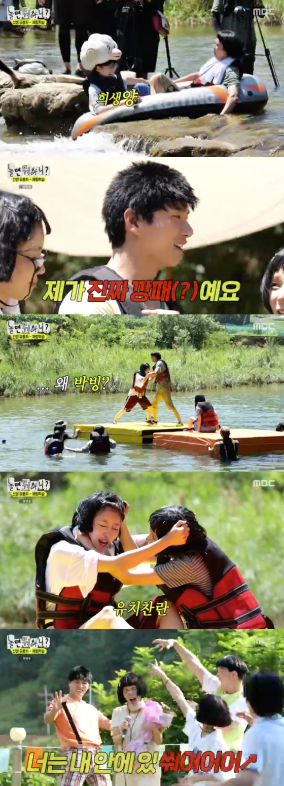 이이경은 이후 부표 위에 올라 멤버 모두를 농락하듯 물에 던져 놀라움을 더했다. 주우재는 "오늘 진골승부다"며 이미주에 향했다. 그러나 두 사람은 박빙의 대결을 펼쳐 현장을 웃음바다로 만들었다. 마지막으로 맞붙은 이미주와 박진주는 승부욕에 차 서로의 머리채까지 잡았다. 하하는 이에 "비키니 파워. 휘어지고 있다"를 외치며 이미주를 응원했고, 이미주는 끝내 대결서 승리해 웃음을 더했다.