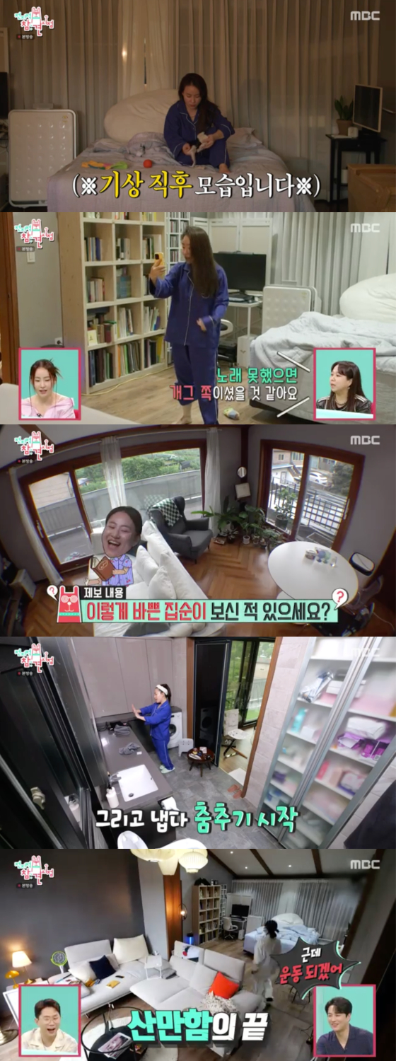조현아는 이어 화장실에서는 꼼꼼한 세면 후 기사를 읽고 춤을 추고, 거실에서는 책을 읽는 중간중간 한시도 쉬지 않고 움직이며 출연자들을 당황시켰다. 이에 홍현희는 "저러면 엄마한테 혼난다", 전현무는 "제발 가만히 좀 있어라"고, 유병재는 "집에서만 2만 보 나오겠다"며 타박해 웃음을 자아냈다.
