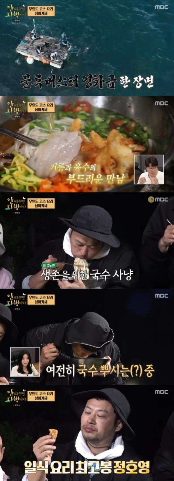 14일 방송된 MBC 예능 프로그램 '안싸우면 다행이야' 136회에서는 무인도에 간 셰프들 레이먼킴, 정호영과 이들의 식자재 납품 팀으로 합류한 성훈, 양치승, 초아의 '자급자족 재료 구하기'가 그려졌다.