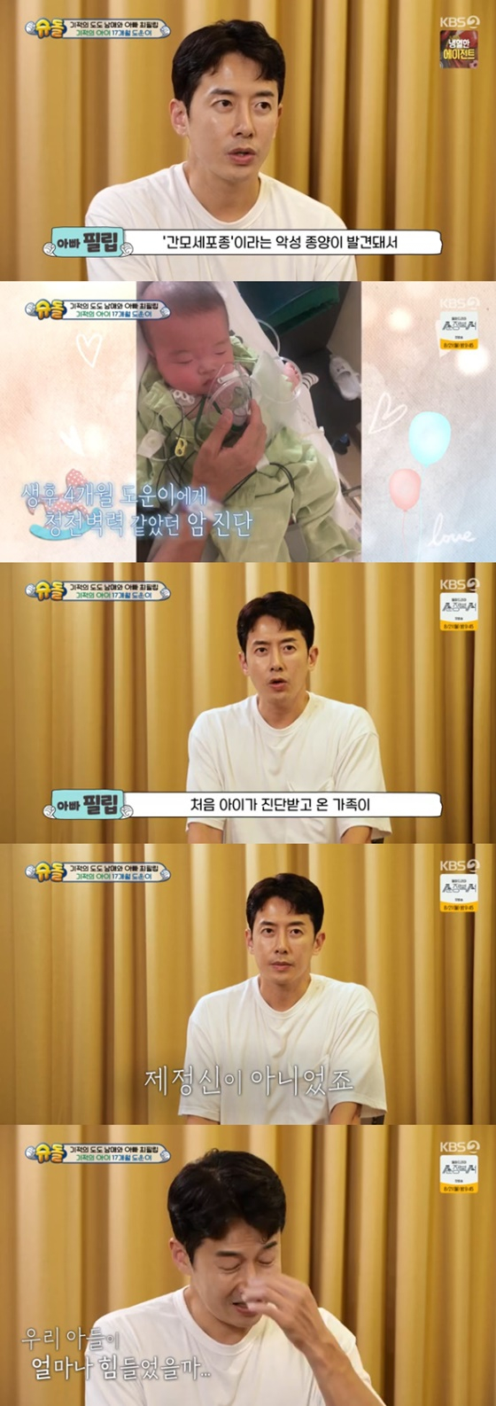 KBS 2TV 예능 프로그램 '슈퍼맨이 돌아왔다'(이하 '슈돌')에서 최필립이 암을 이겨낸 아들을 생각하며 눈물을 보였다.