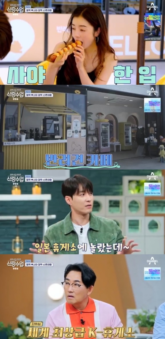 이날 방송에서 심형탁은 아내 사야, 반려견 김밥이와 함께 첫 가족여행을 떠났다. 두 사람은 잠시 휴게소에 들러 간식을 구매해 나눠 먹으며 여유로움을 만끽했다. 특히 휴게소 펫카페에서 구매한 강아지용 매직 핫도그의 화려한 비주얼이 시선을 사로잡았다.