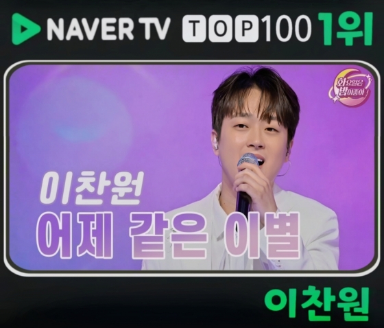 가수 이찬원이 '화요일은 밤이 좋아'에서 선보인 '어제 같은 이별' 무대 영상이 네이버 TV 1위에 오르며 인기를 빛냈다.