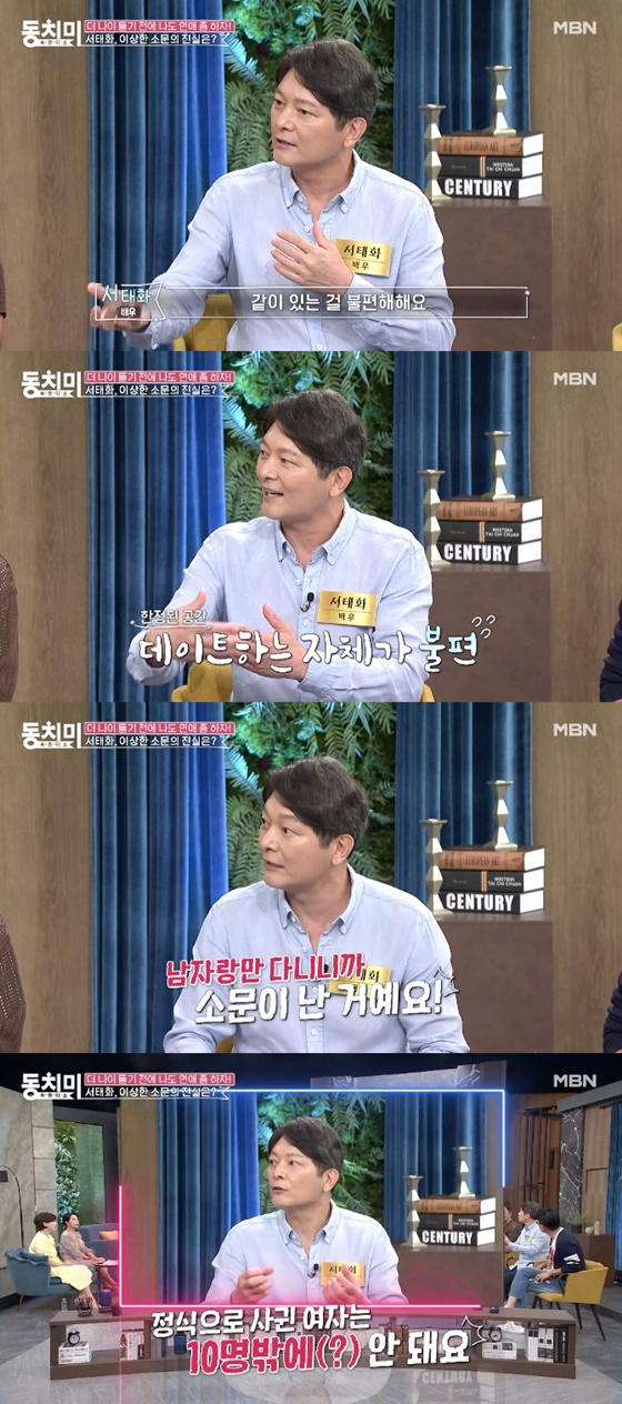또한 서태화는 "숙맥일 거 같다"는 말에 "정식으로 사귄 여자는 지금까지 10명 정도밖에 안 된다"고 밝혔다.