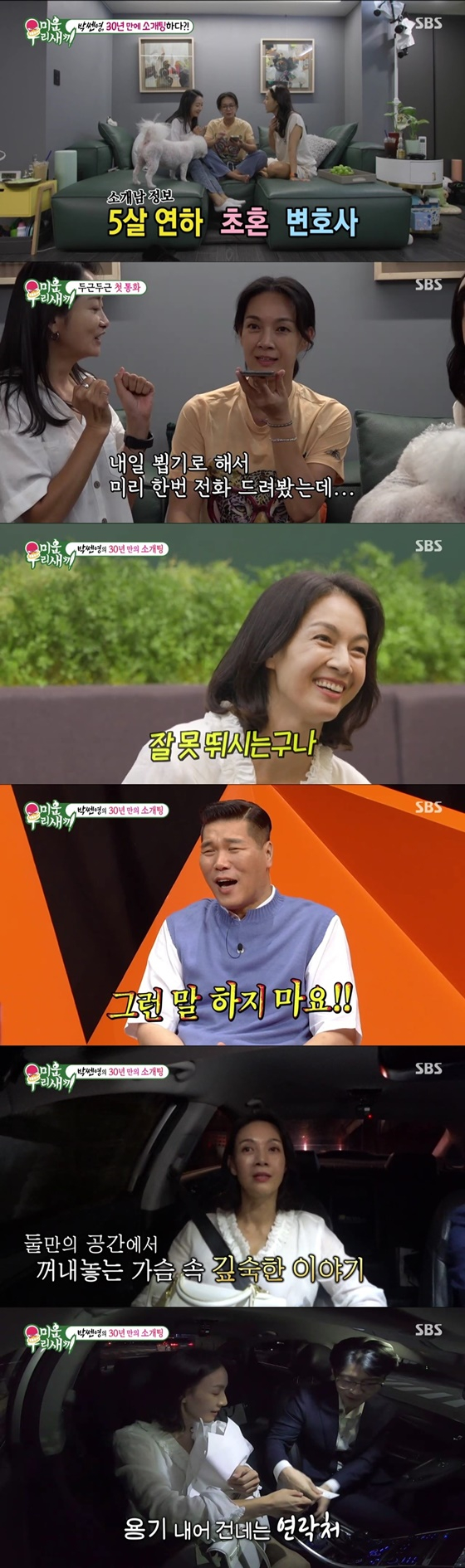 얼마 전 '미운 남의 새끼'로 출연해 결혼 정보 회사를 찾았던 박선영이 30년 만의 소개팅에 나섰다. "마음이 맞는다면 재혼도, 아이가 있어도 상관없다"라고 쿨한 면모를 보여 모두를 놀라게 했던 박선영은 친한 동생 조하나와 강경헌을 집으로 초대해 소개팅 준비를 시작했다. 세 사람은 다섯 살 연하의 변호사라는 소개팅 상대의 프로필을 확인하고 한껏 들떠 기뻐하는 모습을 보였다. 이어 박선영은 직접 고른 소개팅 룩을 동생들에게 선보였다. 동생들은 청바지에 재킷 차림으로 나온 박선영을 보고 기겁하며 직접 옷을 고르기 시작했다.
