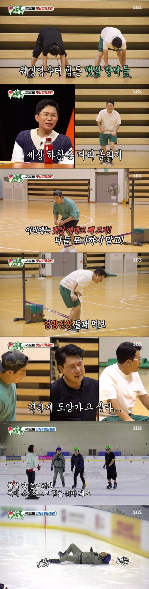 이상민과 김준호, 강남은 국대 운동 끝판왕 이상화를 운동 선생님으로 모시고 특별훈련에 임했다. 이상화는 워밍업부터 삐걱거리는 이상민과 김준호를 보고 "고장 난 수도꼭지 같아, 녹이 슬었어"라며 날카로운 멘트를 날렸다. 국대 선수들이 하는 고강도 허벅지 밴드 운동을 시작하자 곧잘 버티는 이상민, 강남과는 달리 김준호는 균형을 잡지 못하고 부실한 하체를 인증했다.