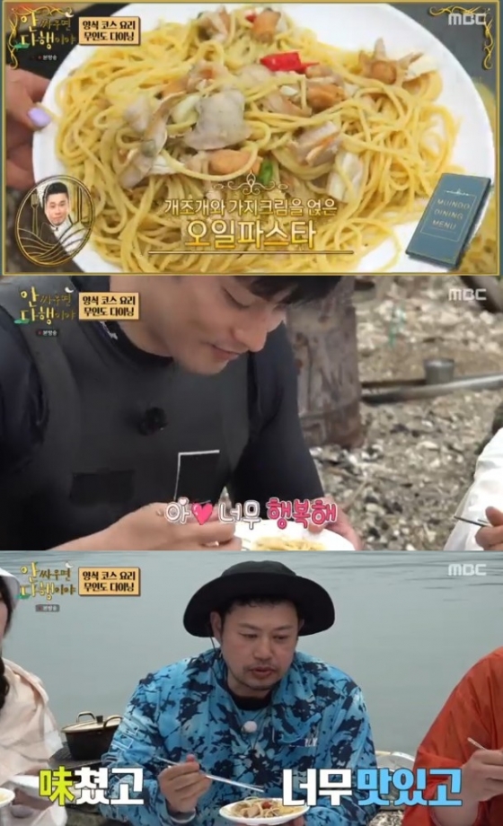'안다행' 셰프 레이먼킴이 섬다이닝의 화룡점정으로 해산물 스테이크와 오일파스타를 선보여 시선을 모았다.