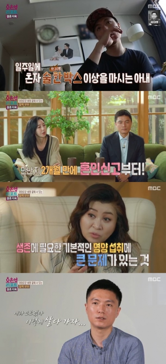 21일 방송된 MBC '오은영 리포트 - 결혼 지옥' 잦은 음주와 불통으로 벼랑 끝에 서 있다는 '절벽 부부' 이소정과 이송웅 부부가 등장했다.