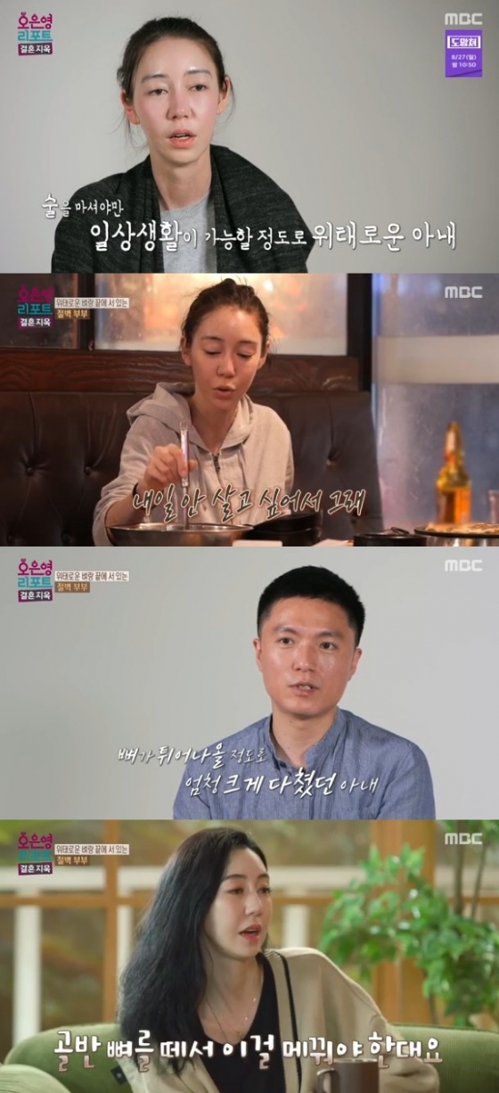21일 방송된 MBC '오은영 리포트 - 결혼 지옥'에서는 잦은 음주와 불통으로 벼랑 끝에 서 있다는 '절벽 부부' 이소정과 이송웅 부부가 등장했다.