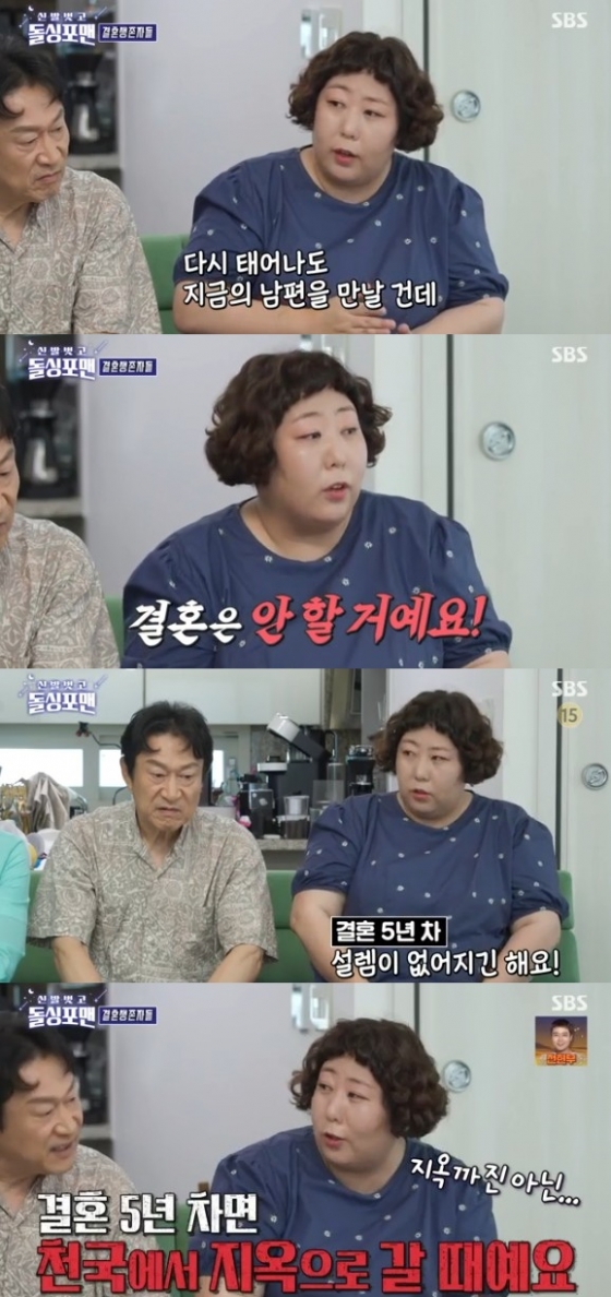 이어 그는 "저는 솔직히 말하면 다시 태어나도 지금 만나는 사람을 만날 건데 결혼은 안 할 거다. 결혼이라는 것 자체가 행복할 땐 너무 행복한데"라고 설명을 덧붙였다.