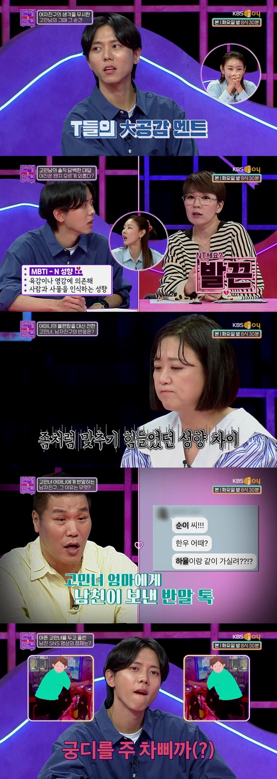 한편 이날 방송에는 흔히 MBTI 'T'라 불리는 성향인 고민남이 여자친구와 사랑을 지키기 위해 고민하고 있는 사연도 방송됐다.