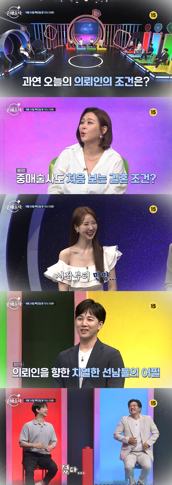 계속되는 선남들을 당황스럽게 만든 조건 공개에 프로팩폭러 중매여왕 박정원 그린 중매술사는 "중매 일을 14년 넘게 했지만 이런 조건은 처음이다. 남자 입장에선 맞추기 힘든 조건"이라며 탄식했다. 24일 오후 10시 30분 방송.