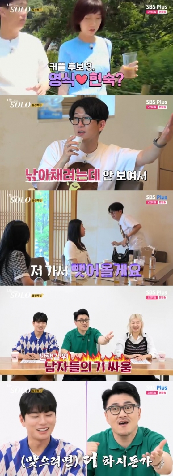 뒤늦게 씻고 나온 영호는 '빨리 움직여라. 데이트 한 번 하고 가야 하지 않겠냐'며 언질을 주는 영자에 "영식님이 현숙님 데리고 나갔냐. 낚아채려고 했는데 밖에 안 보이더라"고 말했다. 이어 영호는 출연자들이 영식과 함께 있는 현숙의 위치를 알려주자 "가서 뺏어오겠다"며 자리를 박차고 나갔다.