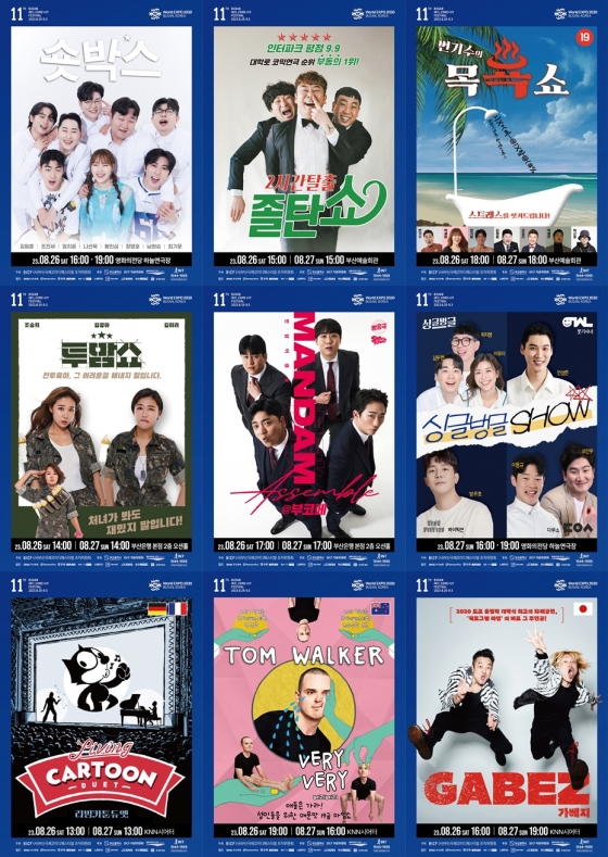 개그맨 이수근이 MC를 맡은 '제11회 부코페' 개막식은 '부코페'에서만 볼 수 있는 특별 공연과 블루카펫으로 화려한 축제의 서막을 연다.축제 1주 차 26일, 27일 진행되는 코미디 극장 공연팀 '숏박스', '졸탄쇼', '변기수의 목욕쇼', '투맘쇼', '만담어셈블@부코페', '싱글벙글쇼', '리빙카툰듀엣', '베리베리', '가베지'는 관객참여형 코미디 공연부터 아슬아슬한 19금 토크쇼, 코믹 토크쇼, 마임 등 오직 '제11회 부코페'에서만 즐길 수 있는 공연으로 관객들에게 꽉 찬 재미를 선사할 예정이다.