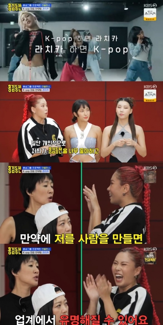 24일 방송된 KBS 2TV 예능 프로그램 '홍김동전'에서는 프로젝트 힙합 혼성그룹 '언벨런스' 첫 음원 '네버(NEVER)'의 녹음 현장과 안무 연습이 담겼다.