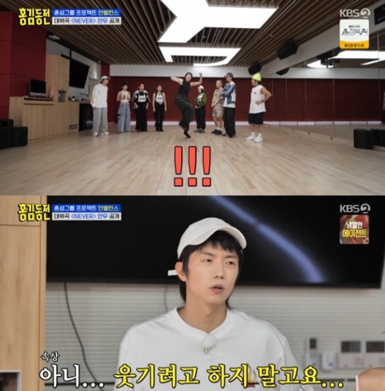 24일 방송된 KBS 2TV 예능 프로그램 '홍김동전'에서는 프로젝트 힙합 혼성그룹 '언벨런스' 첫 음원 '네버(NEVER)'의 녹음 현장과 안무 연습이 담겼다.