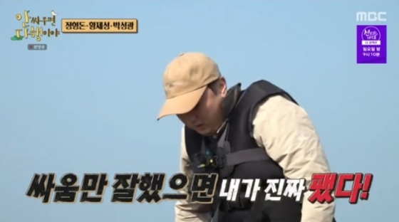 정형돈은 시간이 지날수록 점점 뜨거워지는 햇빛에 "아람단 빨리 하자"며 황제성을 재촉했다. 그 와중에 박성광은 그물치기에는 관심을 두지 않고 주변 생물에만 흥미를 보여 황제성을 답답하게 만들었다.황제성은 제작진과의 인터뷰에 "정말 가관이더라. 계속 저 혼자만 (일하고), 게으른 사람들이다"라며 불만을 토로했다.