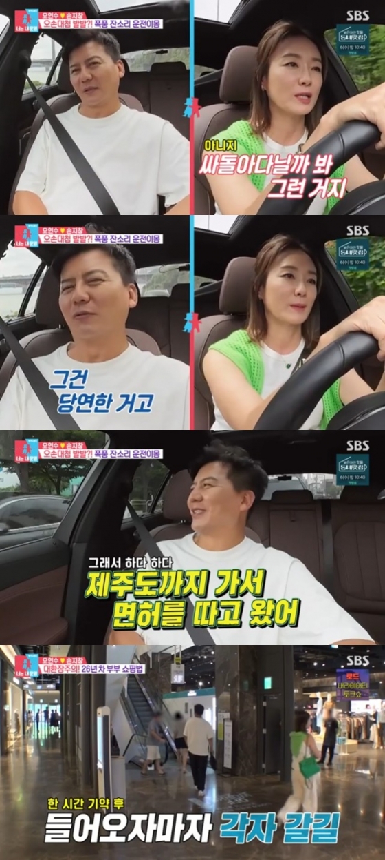 이날 방송에서 오연수가 남편 손지창과의 외출을 위해 운전대를 잡았다. 이에 손지창은 "내가 해도 되는데, 우리 집에서 가장 터프한 운전자는 당신이라는 건 애들이 다 안다"며 못미더운 표정을 지었다. 이에 오연수는 "내가 운전을 못했어봐라. 내가 미국에서 애들 학교를 어떻게 데려다 줬겠냐. 연애할 때 왜 운전면허 못 따게 한 거냐"고 따졌다.
