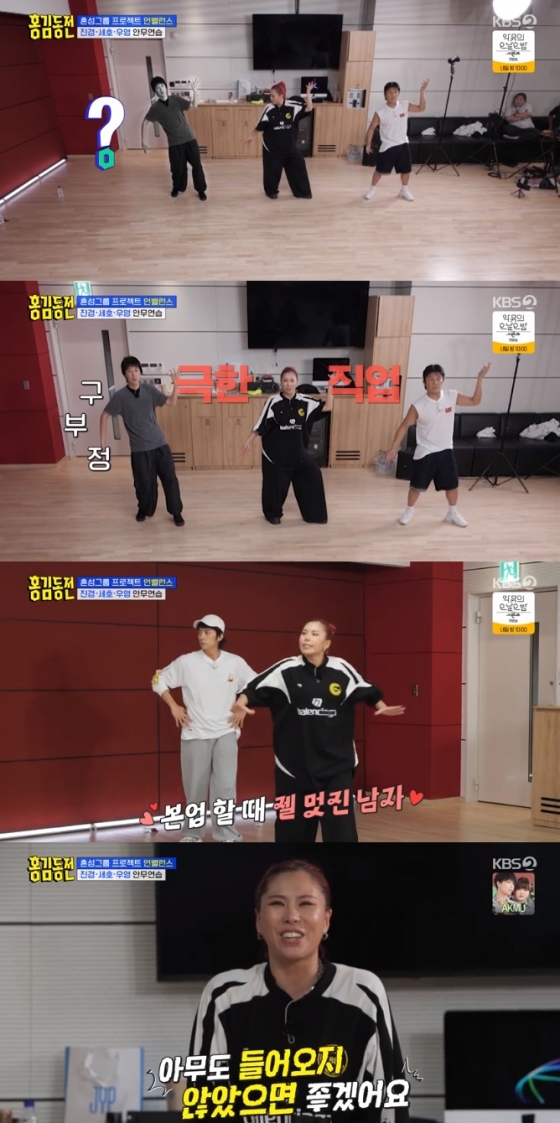 31일 방송된 KBS 2TV 예능 프로그램 '홍김동전'에서는 프로젝트 힙합 혼성그룹 '언벨런스' 첫 음원 '네버(NEVER)'의 녹음 현장과 안무 연습이 담겼다.