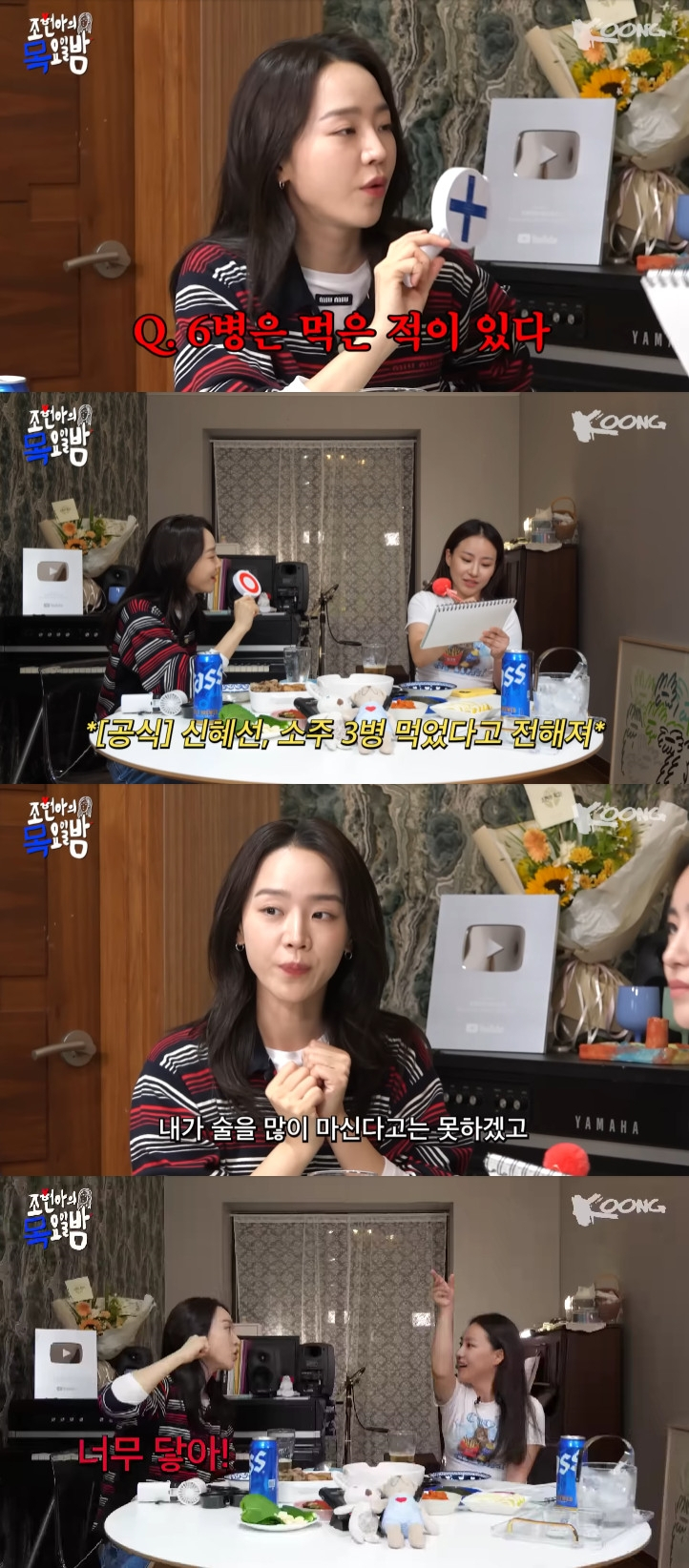 이날 신혜선은 "친구들과 소주 세 병은 먹은 적이 있다. 억울했던 부분이 있는데 술을 많이 마신다고는 못하지만 오래 마시긴 한다. 술자리에 오래 머문다"며 "최대 주량은 화요를 두 병 마시면 제일 기분 좋게 취한다. 항상 필름이 끊기고, 이틀 정도는 아무것도 못한다. 회복력이 부족하지만, 이틀을 포기하고 그냥 마신다"고 밝혔다.