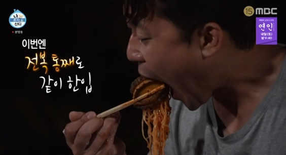 이어 그는 섭과 전복을 찌고 독도새우를 손질한 후 비빔라면을 만들었다. 그는 독도 새우 회와 해산물 비빔면, 오징어순대를 막걸리와 함께 먹으며 매우 만족스러운 표정을 지었다.
