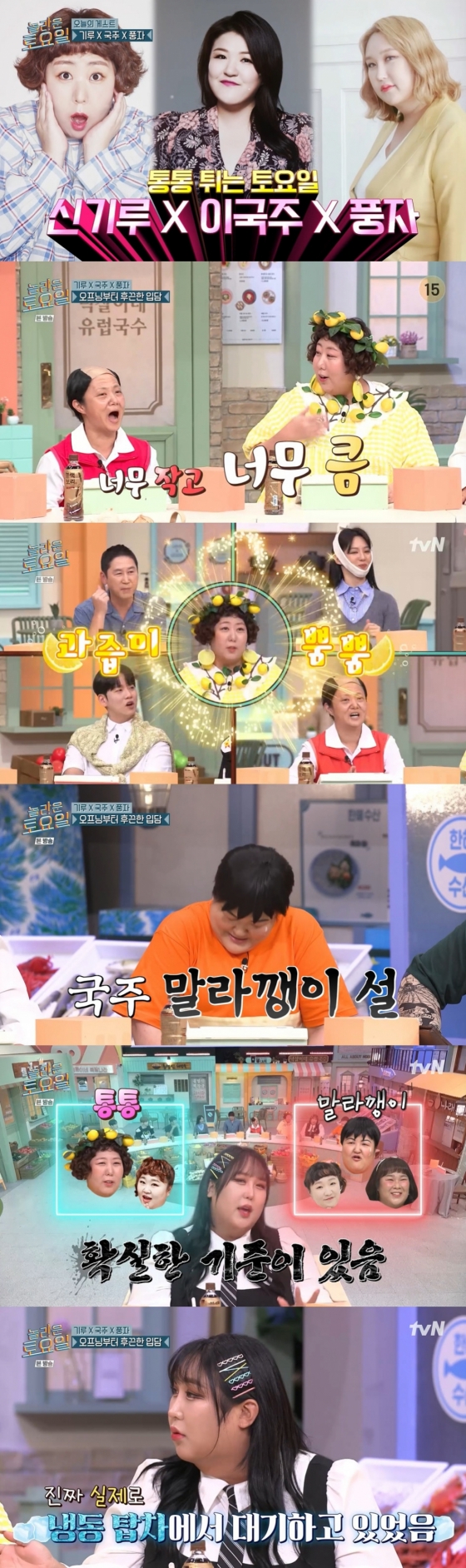 2일 오후 방송된 tvN '놀라운 토요일'(이하 '놀토')에는 신기루, 이국주, 풍자가 게스트로 출연했다.