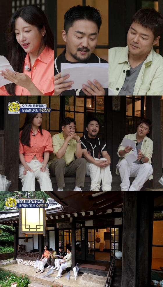 최근 진행된 녹화에서 전현무, 유병재, 하니는 '문학 컬렉션'에 걸맞게 이날만큼은 '사랑과 이별'을 주제로 한 창작시를 준비해왔다. 1930년대 문인단체 구인회처럼 '선녀 삼인회'를 결성한 것. 멤버들은 구인회 멤버였던 이태준 작가의 가옥에서 시 낭송회를 펼쳐 정취를 더했다.