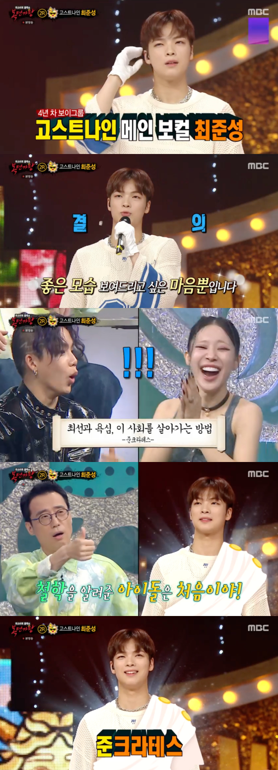 최준성은 이후로도 "인간은 성장하는 동물이지 않냐. 더 성장하고 싶다", "내 자신을 보여주기 위해서는 최선을 다하고, 욕심을 내야 된다. 그게 이 사회를 살아가는 방법이다" 등 다양한 어록을 남겼다. 김성주는 이에 "아이돌계 소크라테스"라고, 이윤석은 "대한민국 최초 철학돌"이라며 감탄해 웃음을 자아냈다.
