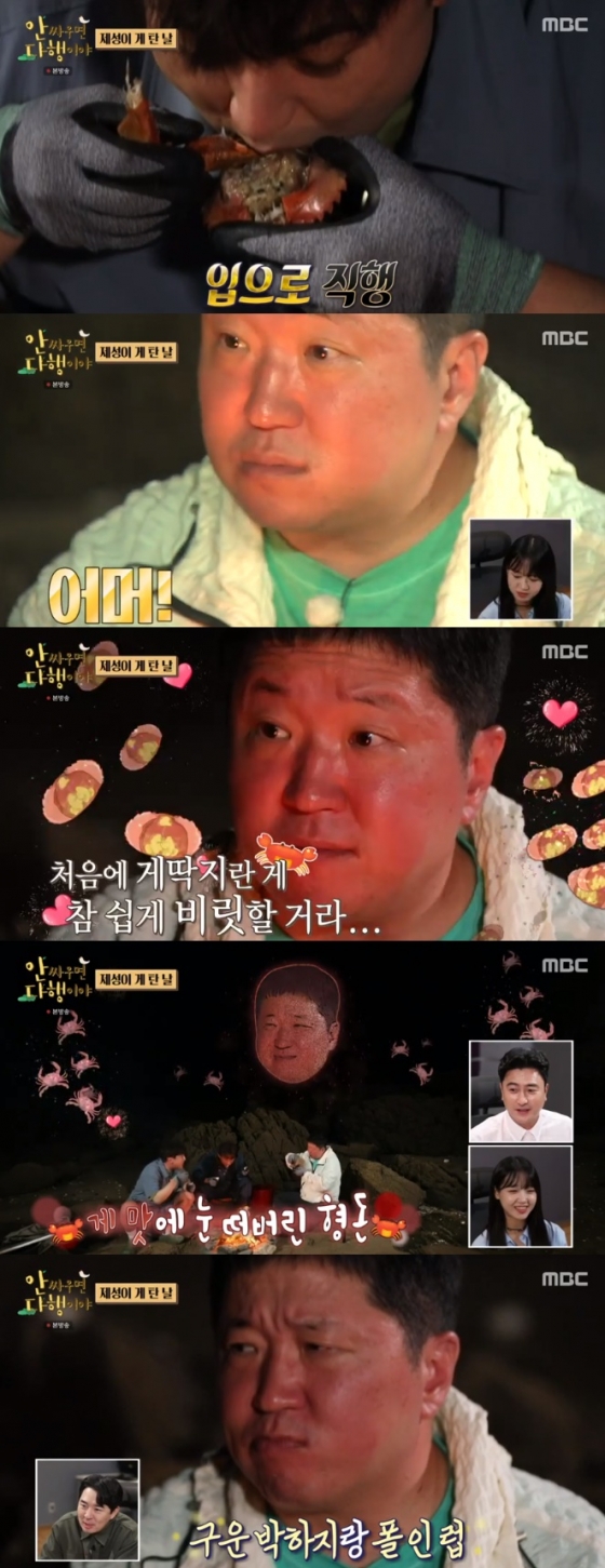 내장을 먹지 않았던 정형돈은 황제성이 게딱지 내장을 건네자 인상을 찌푸렸다. 그러나 정형돈은 내장에 버무려진 게살을 입에 넣자마자 표정이 바뀌며 "나 원래 게딱지 안 먹거든? 간장게장도 이것 때문에 안 먹어. 이야 맛이 녹진하네"라고 감탄했다.