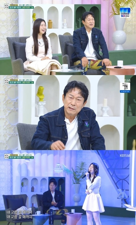 5일 오전 방송된 KBS 1TV 교양 프로그램 '아침마당' 코너 화요초대석에서는 트로트에 입문하게 된 제자 김응수와 그의 스승이 된 가수 성민지가 함께 출연했다.