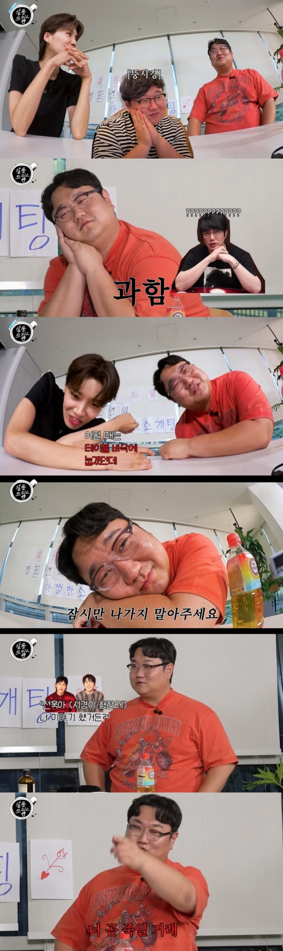 이에 장도연은 "맞다. 왜냐하면 시경 오빠는 멋쟁이지 않냐"라며 거들었고, 나선욱은 "장난식으로 몇 번 들었다. 숏박스 형들이 최근에 '배틀트립' 나갔는데 '선욱아 시경이 형한테 너 이야기 했거든? 너 곧 죽일 거래'라고 했다더라. 진짜인지 장난인지 모르겠다"라며 웃었다.