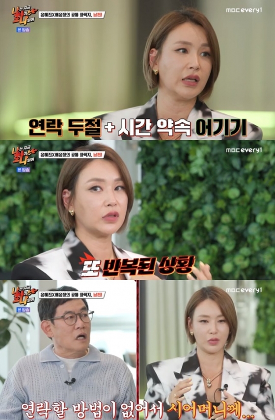 5일 방송된 MBC에브리원·라이프타임 예능 프로그램 '나는 지금 화가 나있어'에서는 탁재훈, 홍성우, 윤혜진, 배윤정이 게스트로 출연했다.