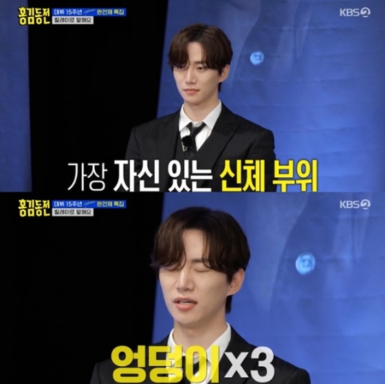 '가장 자신 있는 신체부위'라는 주제가 던져지자 이준호는 '손', 준케이는 '다리'를 외쳤다. 이어 세 번째 순서인 찬성은 한참을 고민하다 답을 하지 못했고, 이내 생각에 잠긴 표정으로 쟁반을 맞아 웃음을 안겼다. 그러자 준호는 찬성을 대신해 다급하게 '엉덩이'를 외쳐 시선을 모았다.