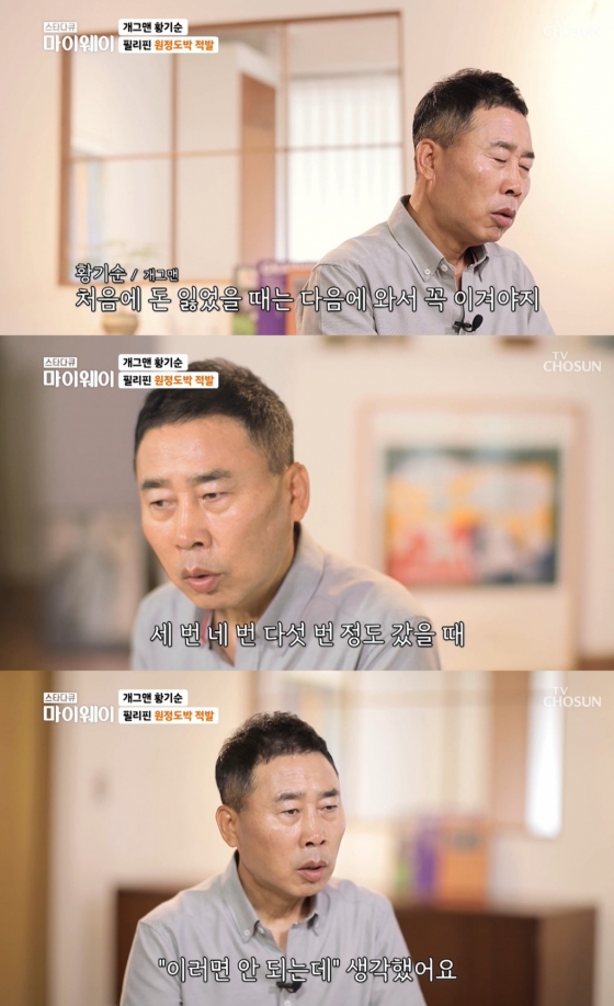 이날 황기순은 과거 원정도박 사건을 떠올리며 "30분 만에 잃은 돈이 8000불(한화 약 1000만원)이다. 처음에 돈 잃었을 때는 꼭 이겨야지 했다. 다섯 번 정도 갔을 땐 '이러면 안 되는데' 이 생각을 했다. 근데 행동은 자연스럽게 비행기에 탑승하고 멈출 수가 없더라"고 털어놨다.