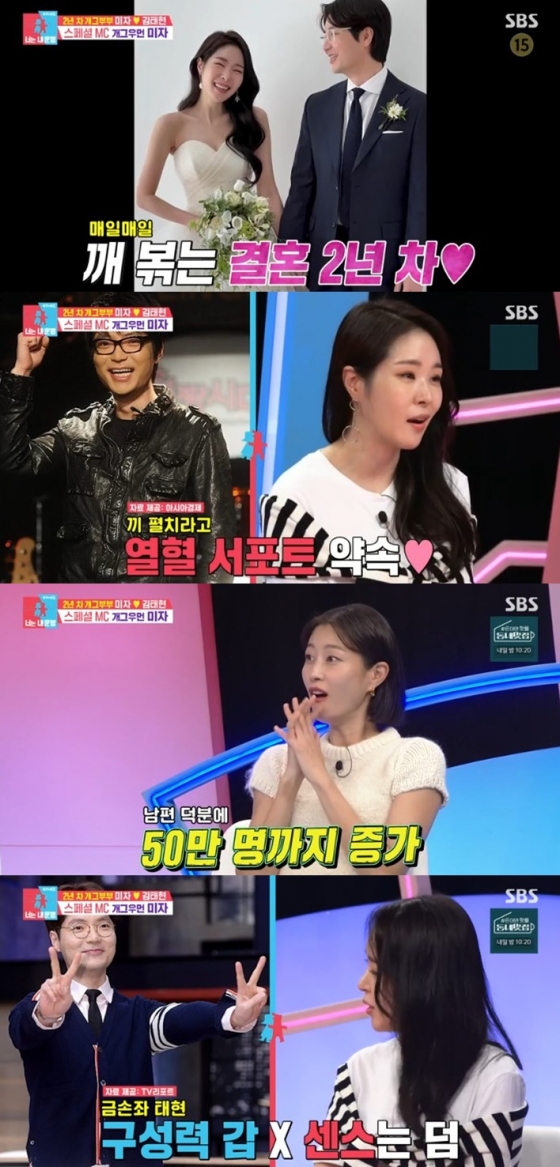 개그우먼 미자가 남편 김태현의 근황을 알려 관심을 모았다.