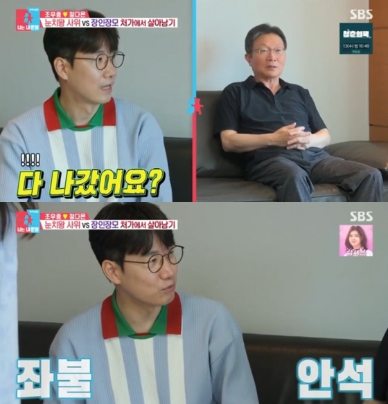 조우종은 장인어른과 단둘이 TV를 시청하던 중 잠시 나갔다 오겠다며 급히 자리를 피했다.