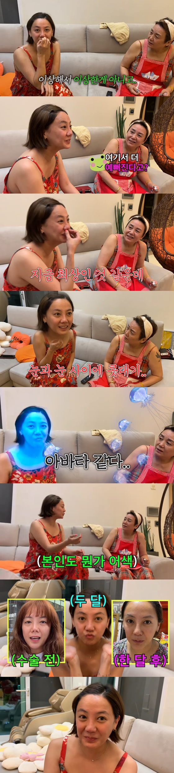 이번 공개된 영상에는 고은아가 코 재수술 후 코를 두고 형부와 얘기를 나눈 모습이 담겼다.