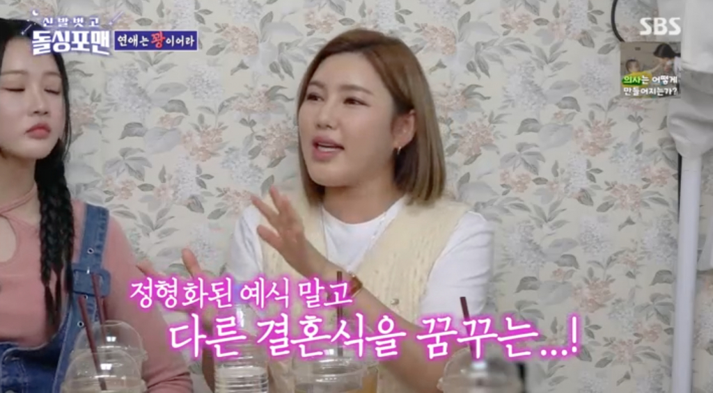 이어 송가인은 "늦어도 42세 전에는 시집을 가고 싶다"라면서 돌싱도 괜찮냐는 질문에는 "돌싱도 돌싱 나름이죠"라고 답했다. 송가인은 "결혼식을 다녀보면 복잡하기도 하고 시간에 맞게 해야되고 그것보다 원빈 이나영 부부처럼 야외에서 결혼식을 하고 싶다"라며 "패물은 굳이 뭐 받아야 하나요?"라고 쿨하게 답했다.