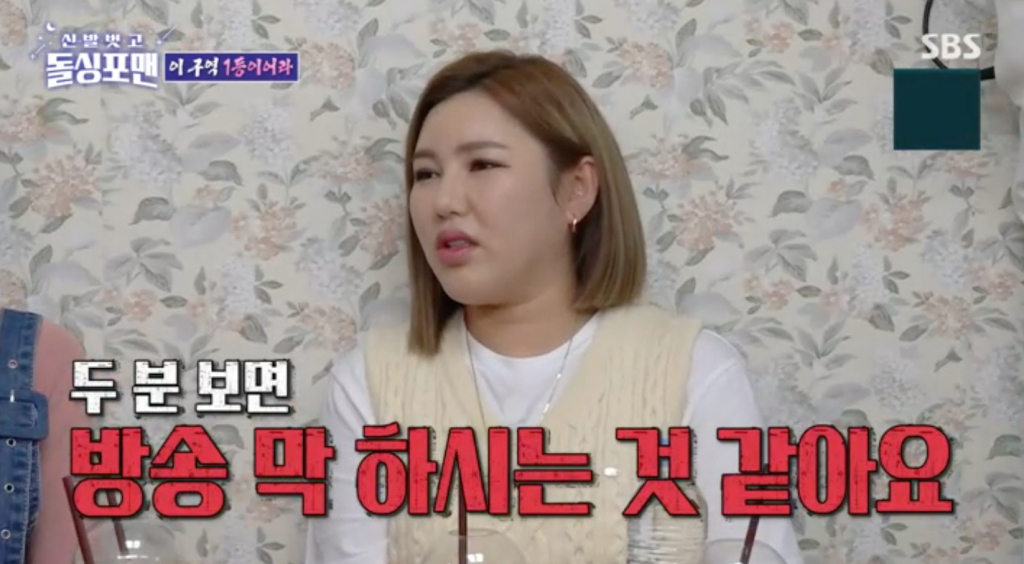 송가인은 12일 방송된 SBS '신발벗고 돌싱포맨'에 홍지윤과 함께 게스트로 출연했다. '돌싱포맨' 멤버들은 이날 두 사람의 출연에 격한 반응과 함께 환영의 인사를 건넸다.