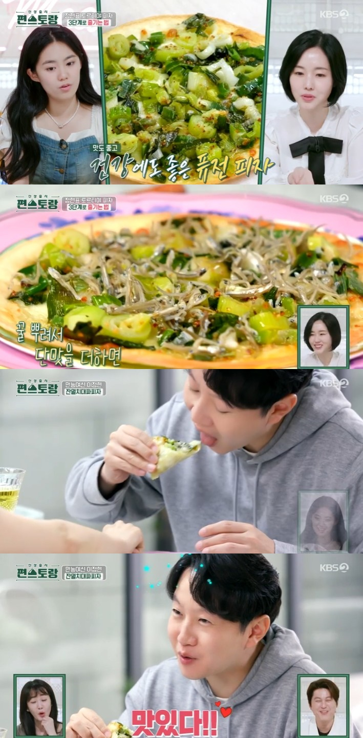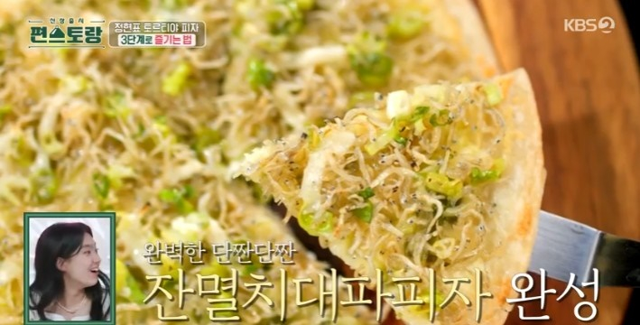 배우 겸 가수 이정현이 한식과 양식의 느낌을 모두 즐길 수 있는 '잔멸치 대파 피자'를 선보였다.