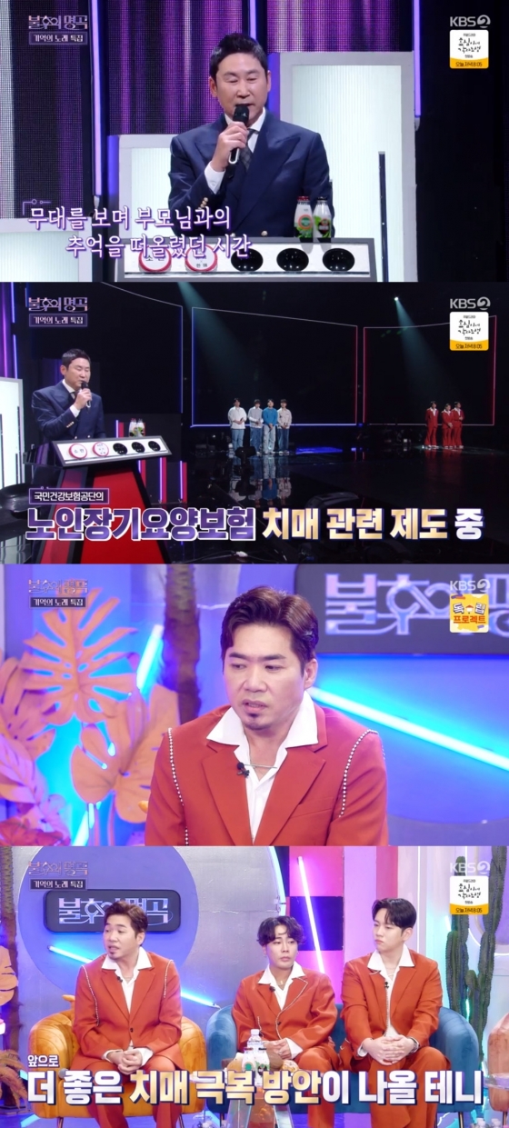 김조한은 "저희 아버지도 치매를 앓으셨다. 사실 치매가 누구나 걸릴 수 있는 병"이라며 "의학이 발달하고 있고, 더 좋은 극복 방안이 나올 테니까 힘내시고 우리 노래가 위로됐으면 좋겠다"고 말했다.