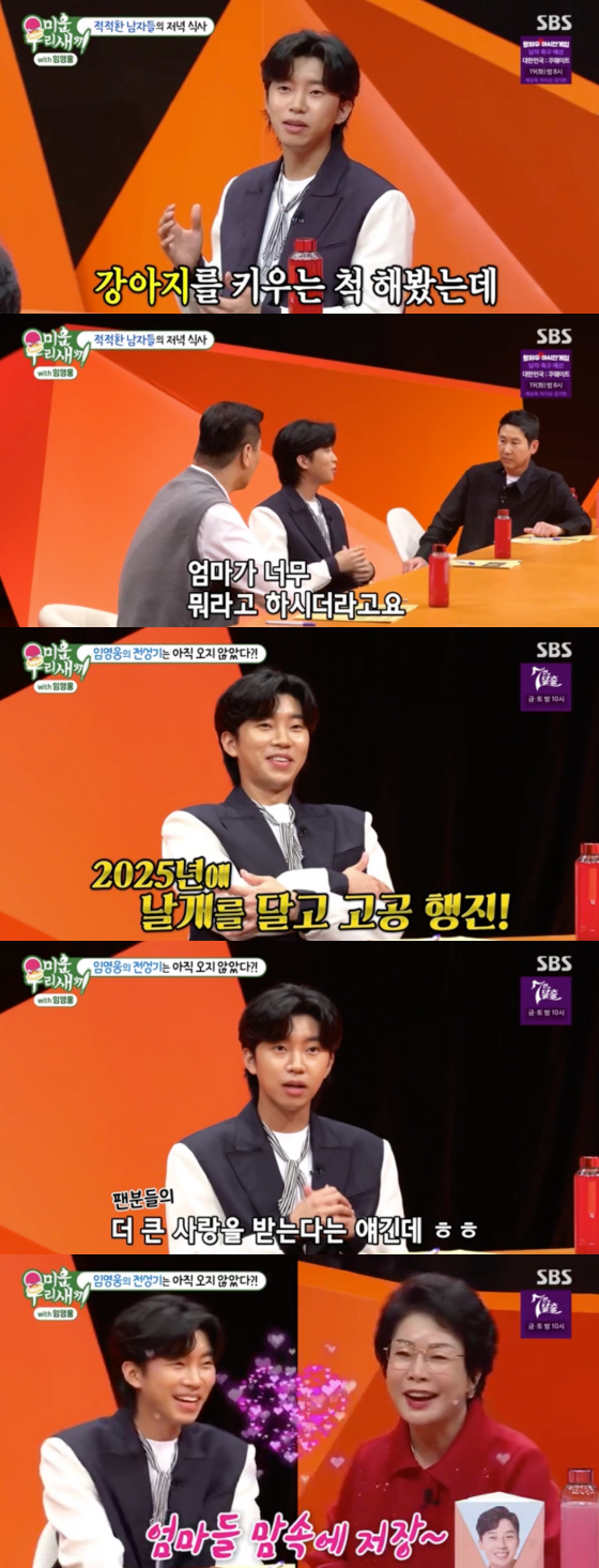 지난 17일 방송된 SBS 예능 프로그램 '미운 우리 새끼'에서는 임영웅이 스페셜 MC로 출연했다.