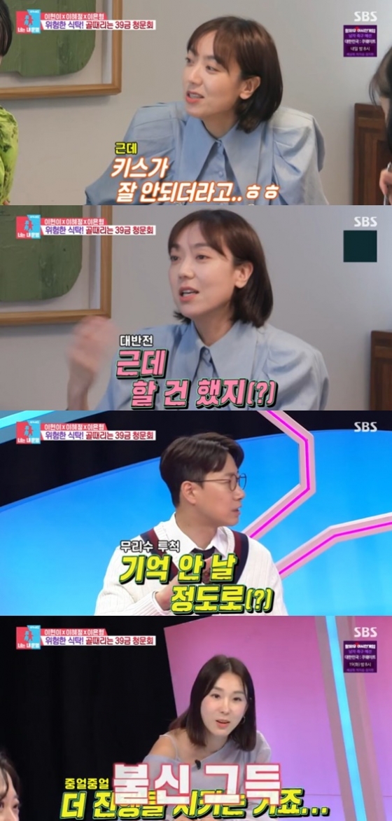 이혜정이 "언니 혹시 로맨틱한 거 하려하면 웃기냐"고 질문을 건네자, 이은형은 "둘이 빵 터진 적 있다. 최근에도 키스하려고 했는데 서로 밀어냈다. 근데 할 건 했다"며 고백해 웃음을 안겼다. 이에 이현이는 "내 생각인데 오래된 부부 중에 키스하는 사람들 잘 없지 않냐. 나도 뽀뽀는 많이 하는데 키스는 안 한다"며 의견을 전했다.