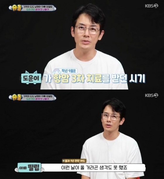 배우 최필립이 암을 완치하고 건강해진 아들 도운이의 모습에 감격했다.