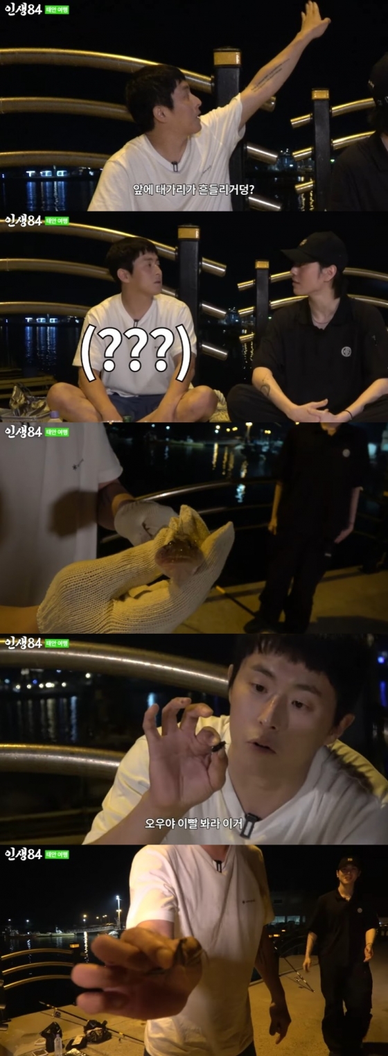이어 기안84와 유겸은 본격적으로 밤낚시에 임했다. 기안 84는 망둥어를 건져 올려 생선 주둥이에 키스를 하는 등 4차원 같은 행동을 이어갔다. 또 낚시에 집중하지 못하고 다시 나타난 사마귀를 잡고 들이밀며 장난을 쳐 제작진을 놀라게 했다.