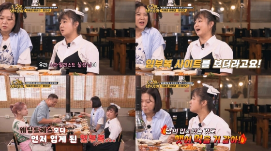 쉬지 않고 식사를 이어가던 박나래는 "우리 스타일리스트 실장님이 내 옷을 임부복 사이트에서 보고 있더라"며 "이게 말이 되냐, 결혼도 안 한 싱글이 임부복 사이트에서 옷을 본다는 게 말이 되냐"고 불평하면서도 젓가락을 내려놓지 못한다.