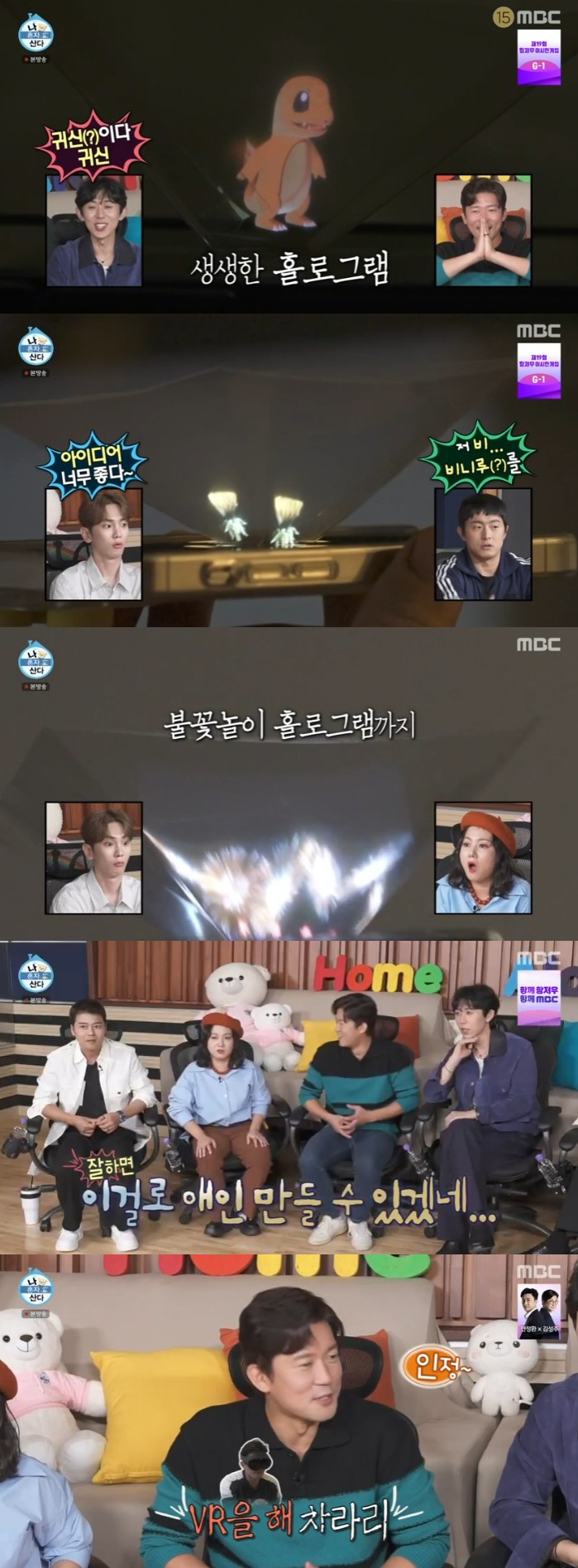 VCR영상을 보던 무지개 회원들은 "우와. 너무 신기하다. 귀신이다. 이게 된다. 아이디어 너무 좋다"며 환호했다. 박나래가 "잘하면 이걸로 남자친구, 여자친구도 만들 수 있겠다"고 말하자, 키는 "차라리 VR을 해라"며 돌직구를 날려 웃음을 유발했다. 이후 코드 쿤스트는 엘사, 마리오, 불꽃놀이, 우주 영상 등 다양한 동영상을 재생시키며 홀로그램의 매력에 푹 빠졌다.